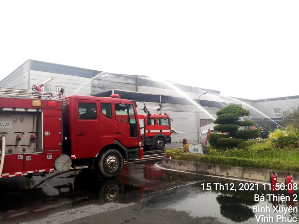 At 11 a.m. on December 15, 2021, a fire broke out in Ba Thien 2 industrial zone – Vinh Phuc. The fire was controlled by a specialized fire force from FETH company after only a few hours of detection and “fighting” with the fire.