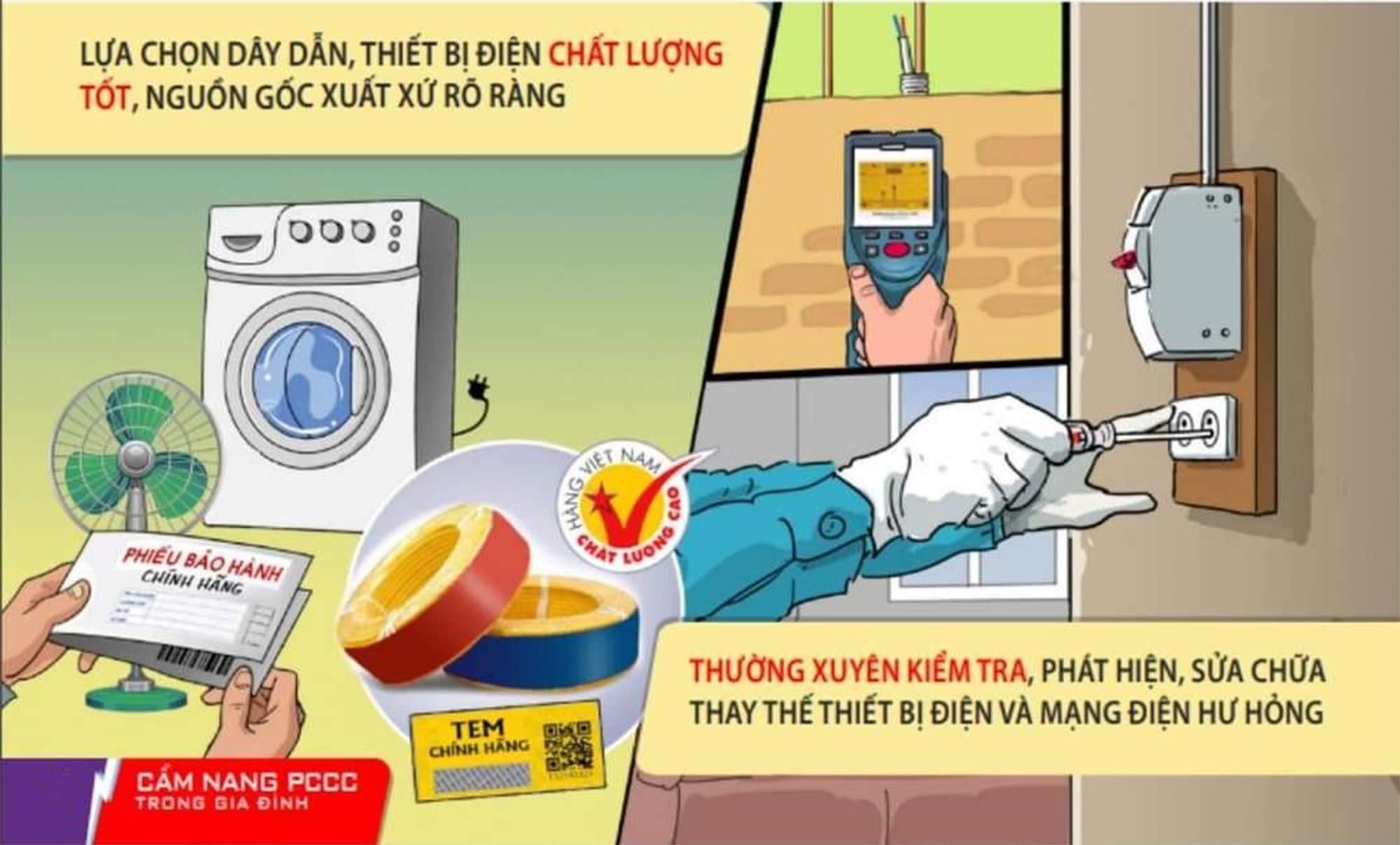 Cùng với việc sử dụng máy sấy an toàn khuyến cáo an toàn phòng cháy tại gia đình những ngày nồm, ẩm là thường xuyên kiểm tra thiết bị điện như: bình nóng lạnh, tủ lạnh, bếp từ… Bởi vì, thời tiết ẩm thấp có thể làm ngưng tụ nước tại các bản mạch, thậm chí ẩm ướt lâu ngày có thể tạo giọt chảy vào các ổ điện gây giật, hoặc chập cháy bất cứ lúc nào.