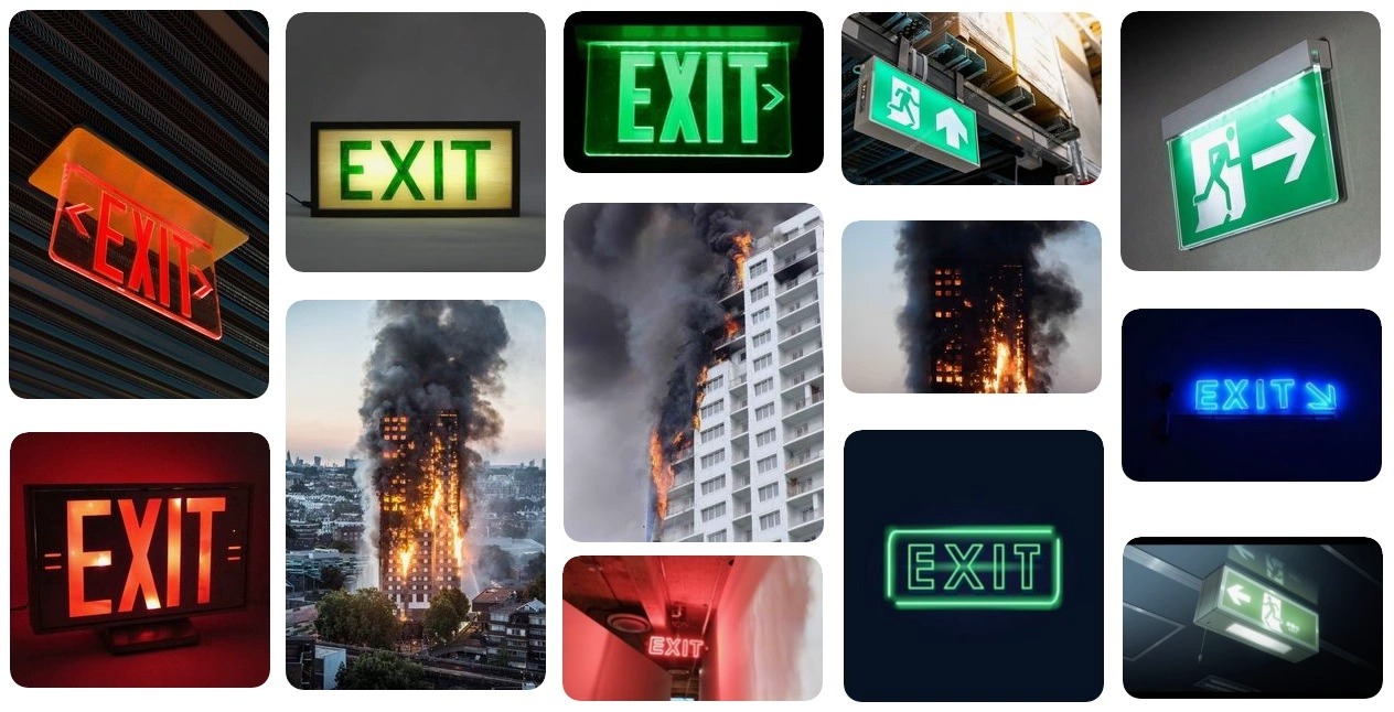 Đèn exit phải được nhìn thấy rõ ràng các chữ “LỐI RA”/ “EXIT” hoặc các chữ khác thích hợp từ khoảng cách tối thiểu 30 mét trong điều kiện chiếu sáng bình thường (300lux) hoặc khi có sự cố (10lux).