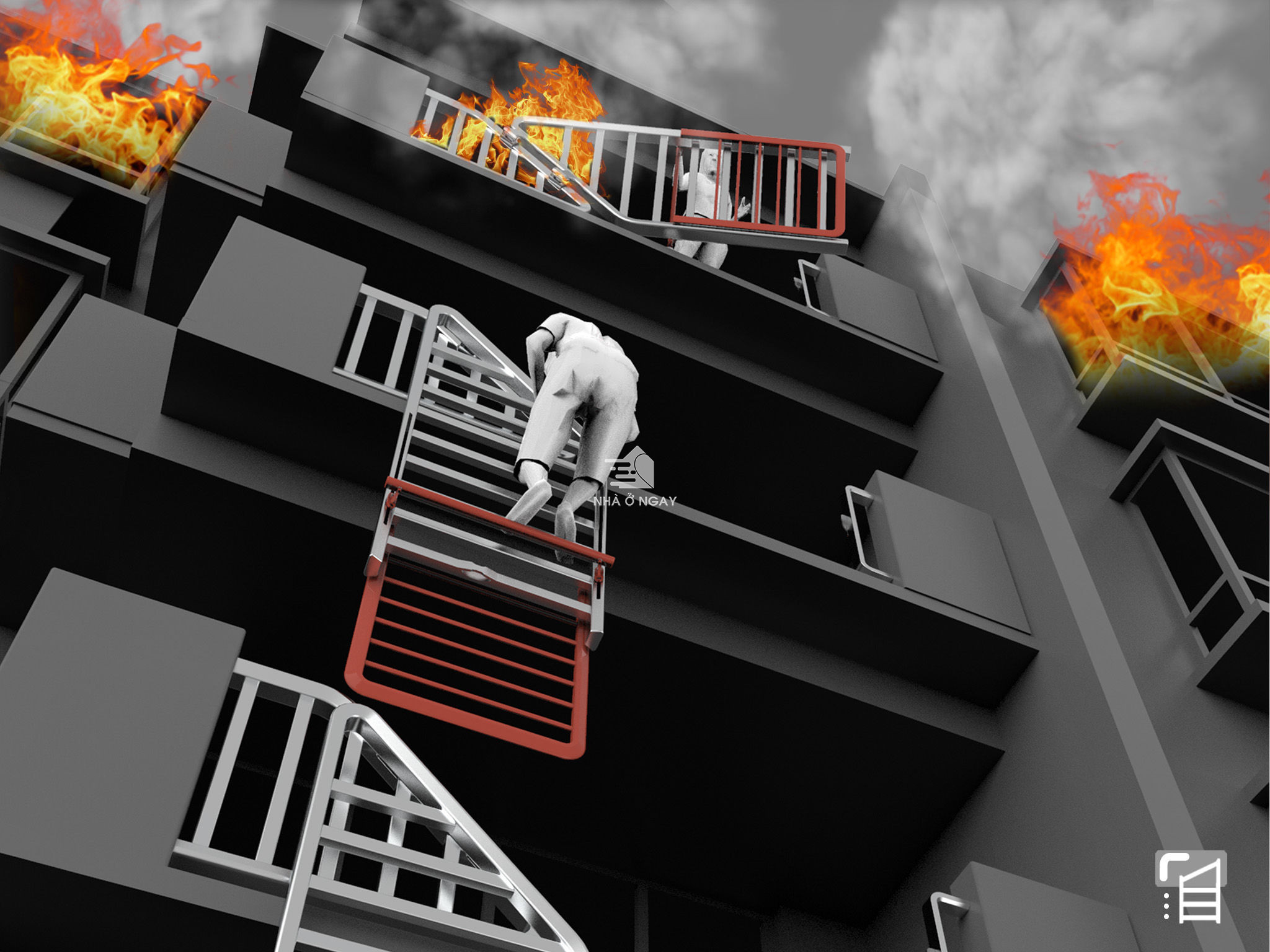 Một hệ thống thoát hiểm toàn diện được tạo nên bởi hành lang, buồng thang, cầu thang thoát hiểm; cửa chống cháy; đèn exit và đèn sự cố làm theo tiêu chuẩn an toàn xây dựng và an toàn cháy nổ.