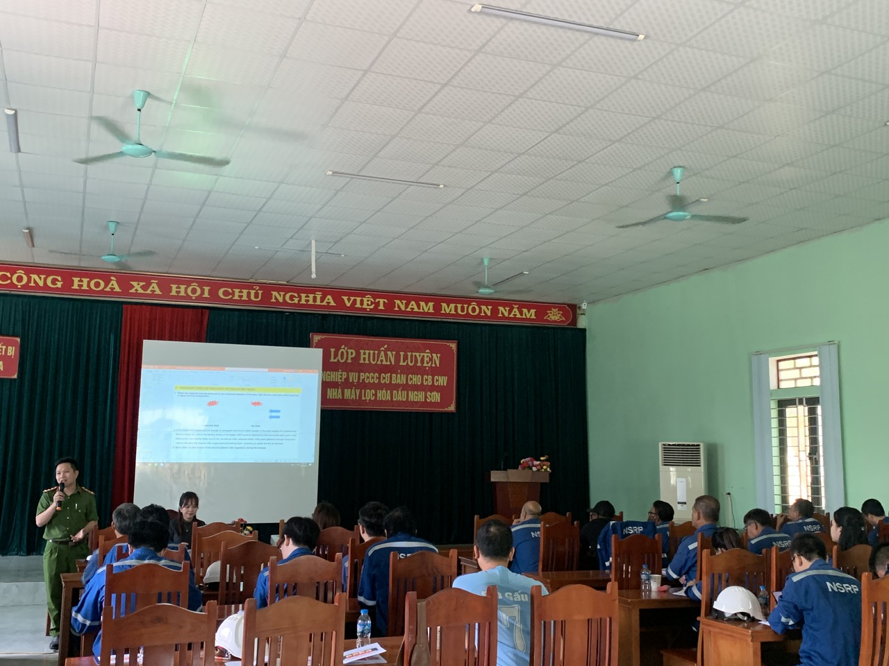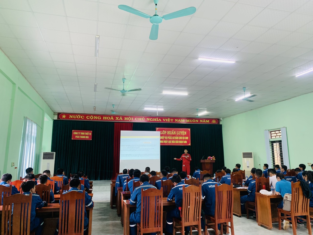 Theo yêu cầu của Công ty TNHH Lọc hóa dầu Nghi Sơn (NSRP) về việc huấn luyện Phòng cháy chữa cháy định kỳ hàng năm cho cán bộ công nhân viên. Công ty TNHH Thiết bị PCCC Thanh Hóa đã tiếp nhận yêu cầu và phối hợp với Phòng cảnh sát PCCC Tỉnh Thanh Hóa tổ chức các lớp huấn luyện nghiệp vụ PCCC cho hơn 1000 nhân viên của NSRP.